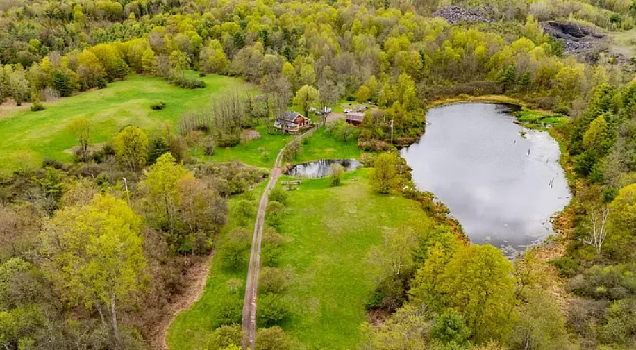 1826 farmhouse, overlooking 29.80 acres, stunning views of serene ponds and natural surroundings.