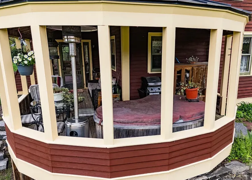 Enjoy your morning coffee in the sunny sunroom or the lovely, curved sun porch.