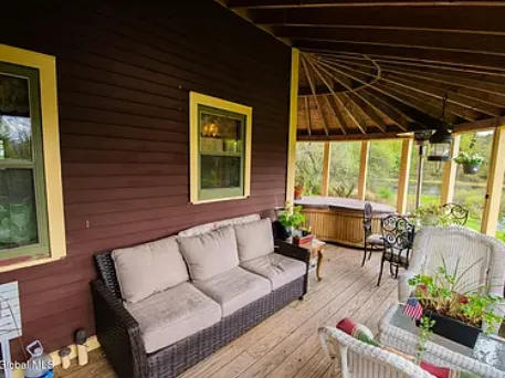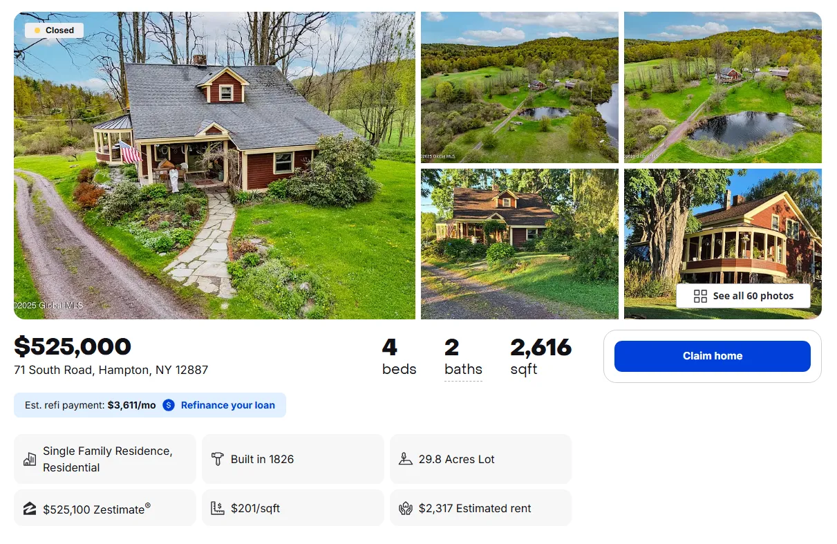 This enchanting property combines rustic charm with breathtaking views, conveniently located just 15 minutes from the Vermont border and 45 minutes from Lake George.