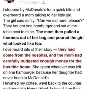 The woman wasn’t looking for a story that day. She had only stopped at McDonald’s for a quick coffee, planning to sit for a few minutes before…